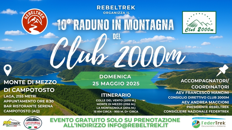TORNA IL RADUNO IN MONTAGNA PIÙ IMPORTANTE DELL’APPENNINO, giunto alla sua DECIMA EDIZIONE, anche quest’anno organizzato da REBELTREK, con il patrocinio della FEDERTREK ESCURSIONISMO E AMBIENTE.