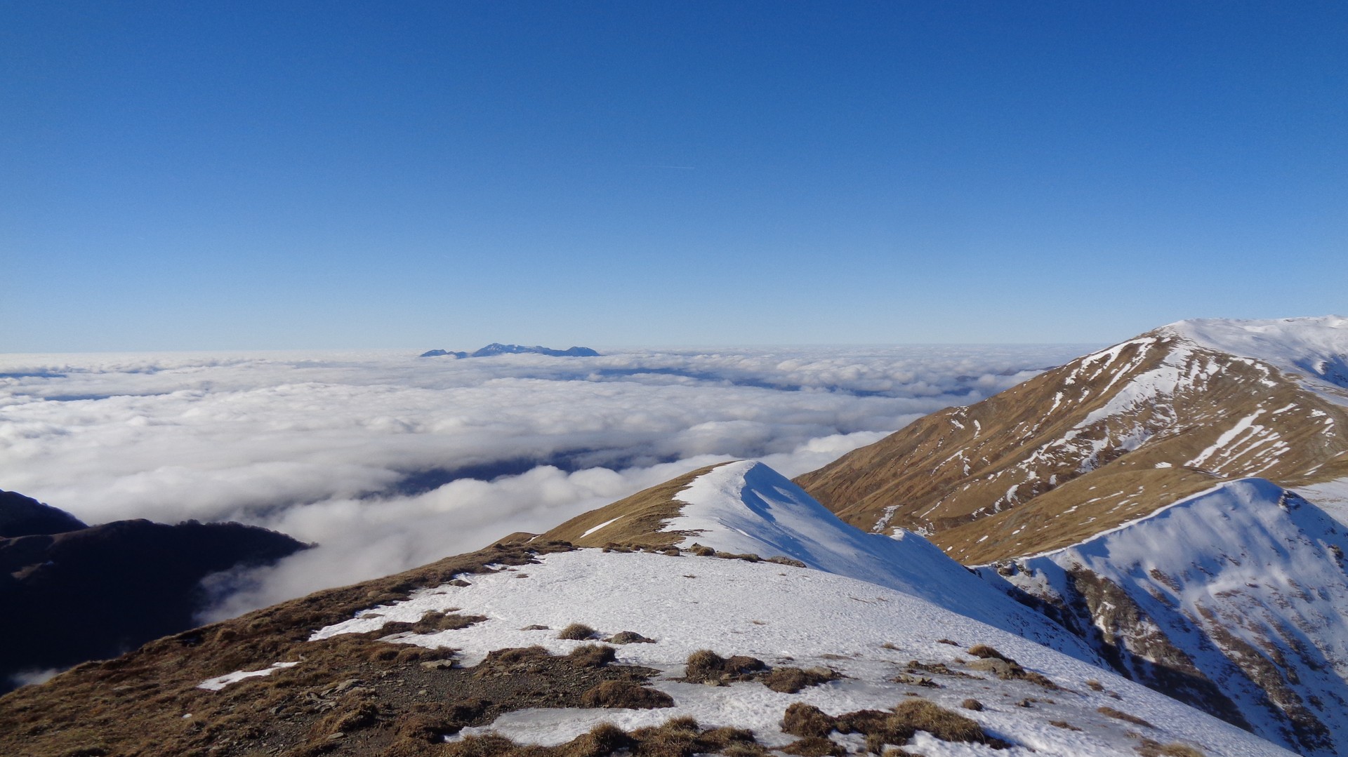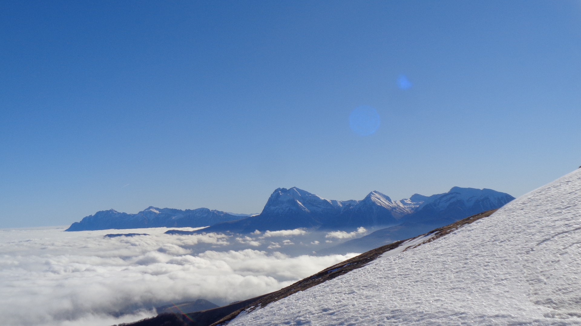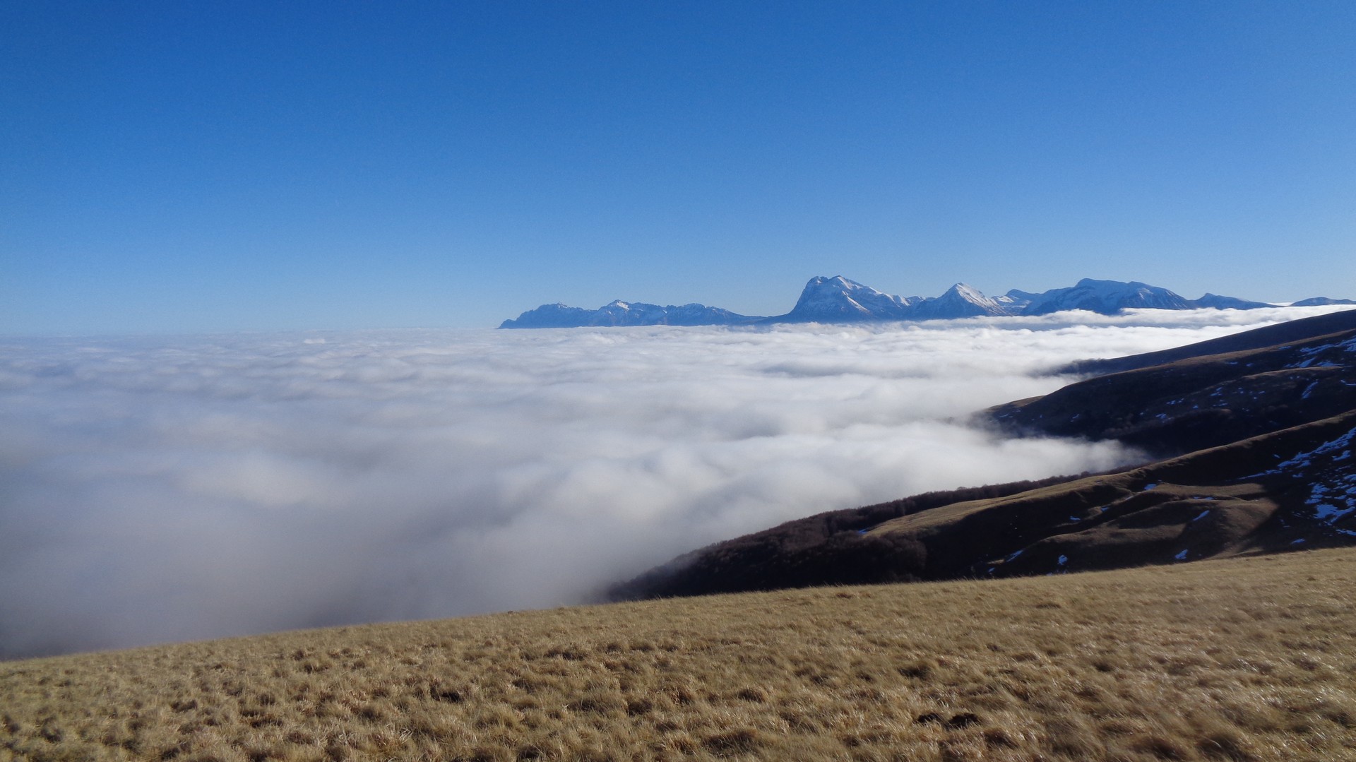 Tutta l'Italia centrale sotto un tetto bianco e noi che camminavamo sopra di esso accanto alle cime più alte dell'Appennino.