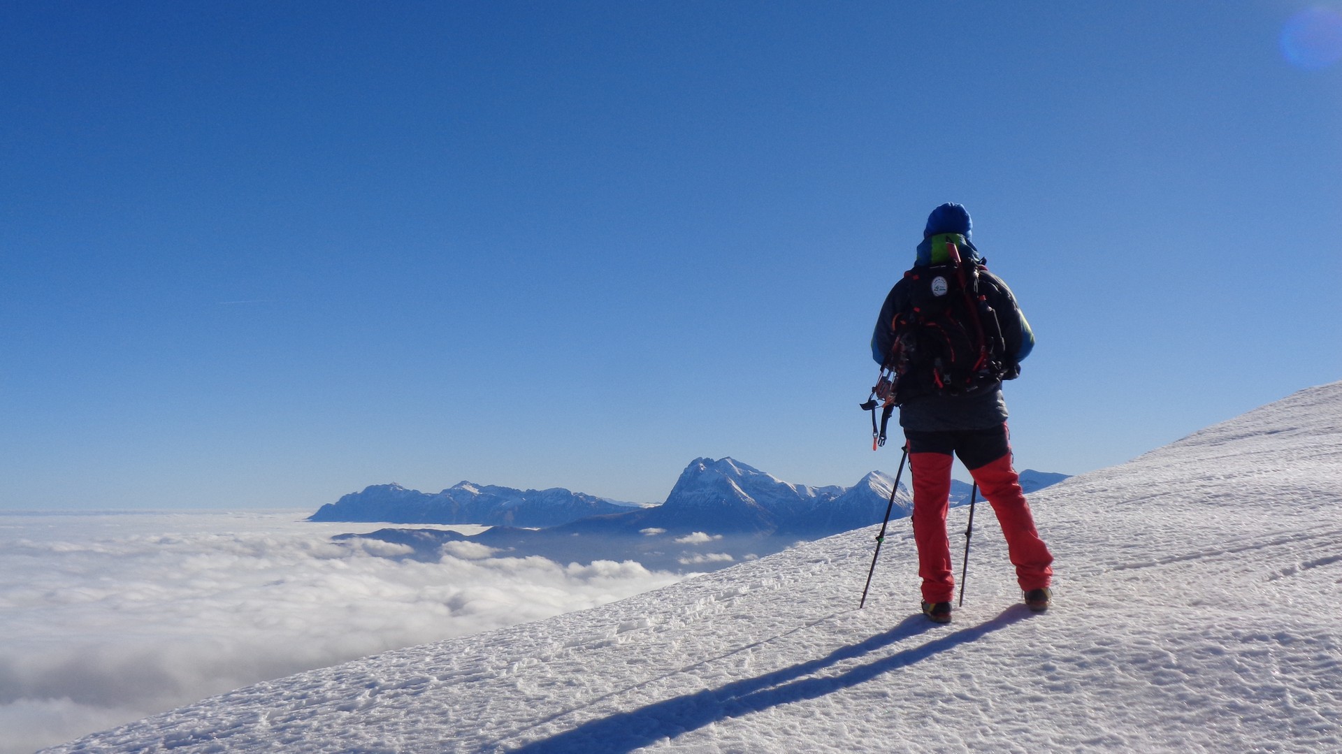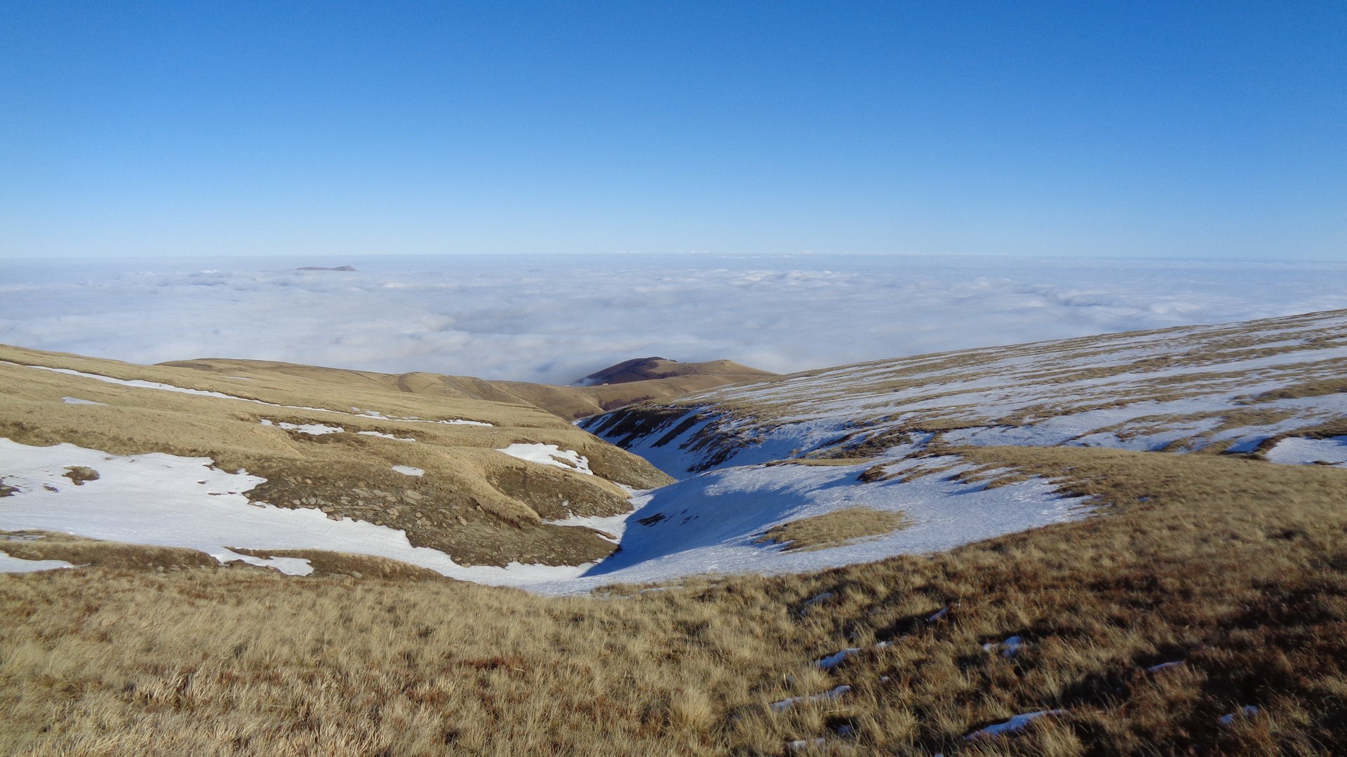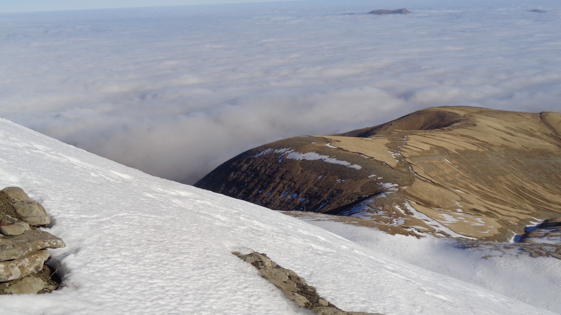 Tutta l'Italia centrale sotto un tetto bianco e noi che camminavamo sopra di esso accanto alle cime più alte dell'Appennino.