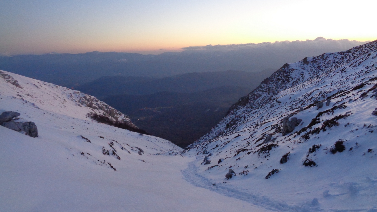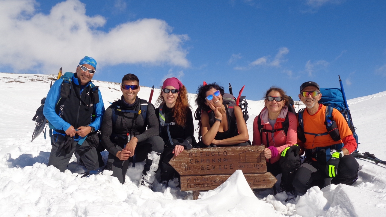 Per non parlare del tramonto che sulla cresta del Sevice, specchiandosi sulla bianca coltre, ha reso di color d’oro tutto quello che era di fronte a noi.