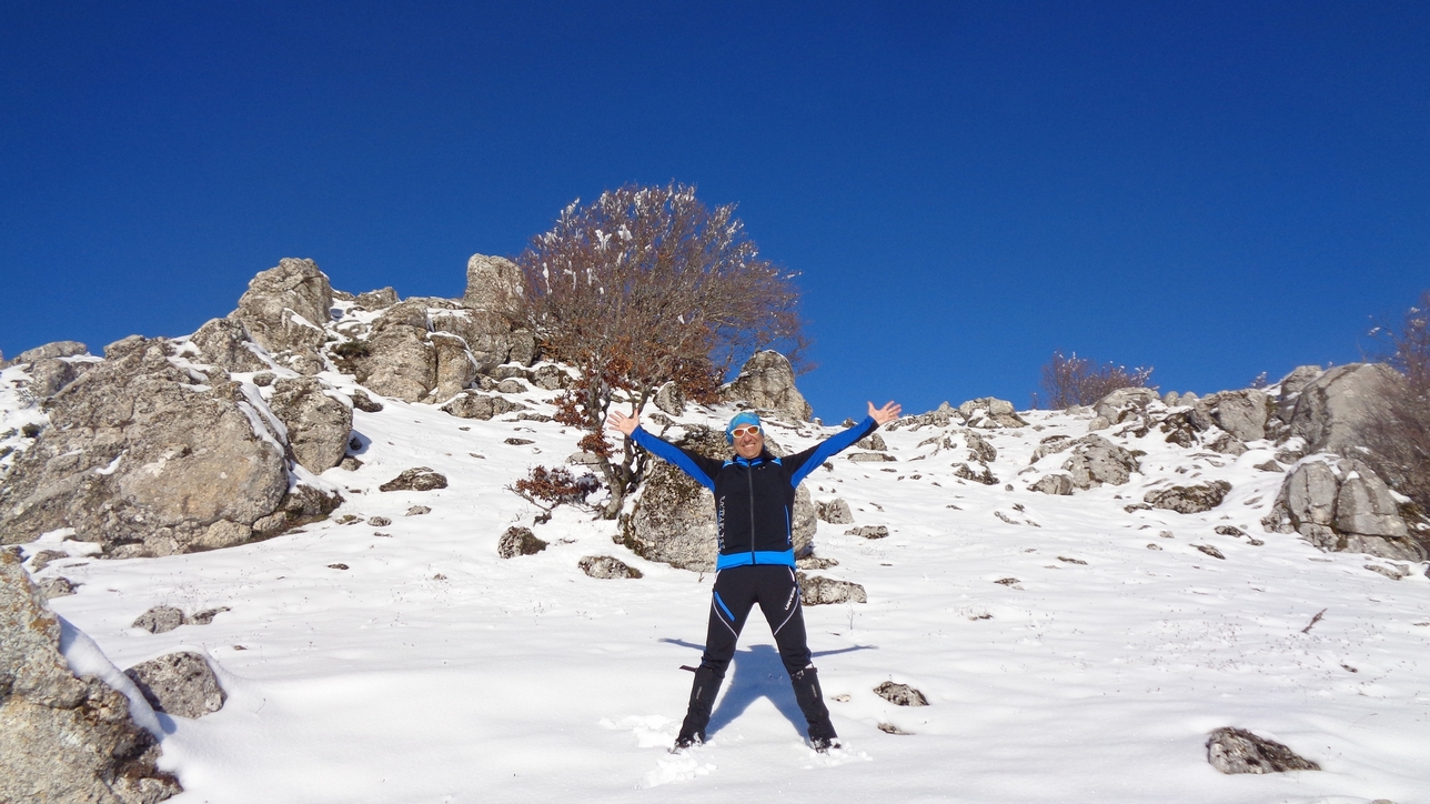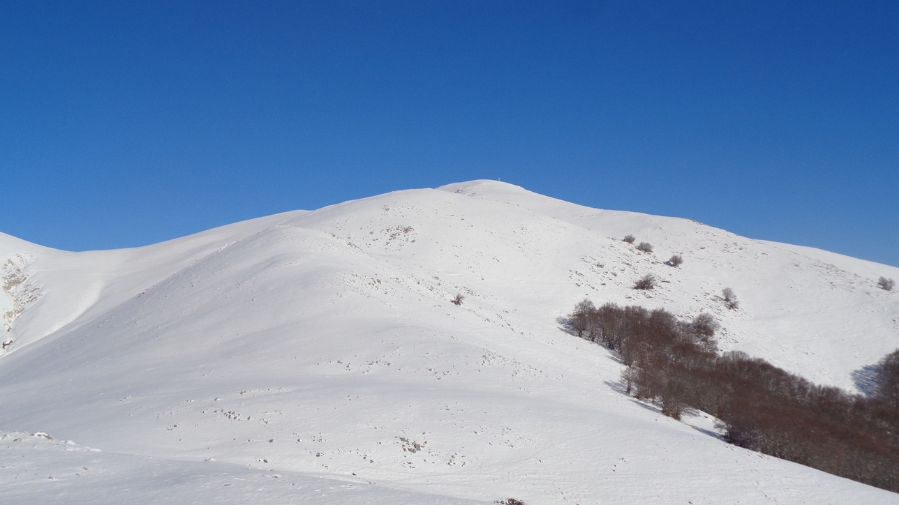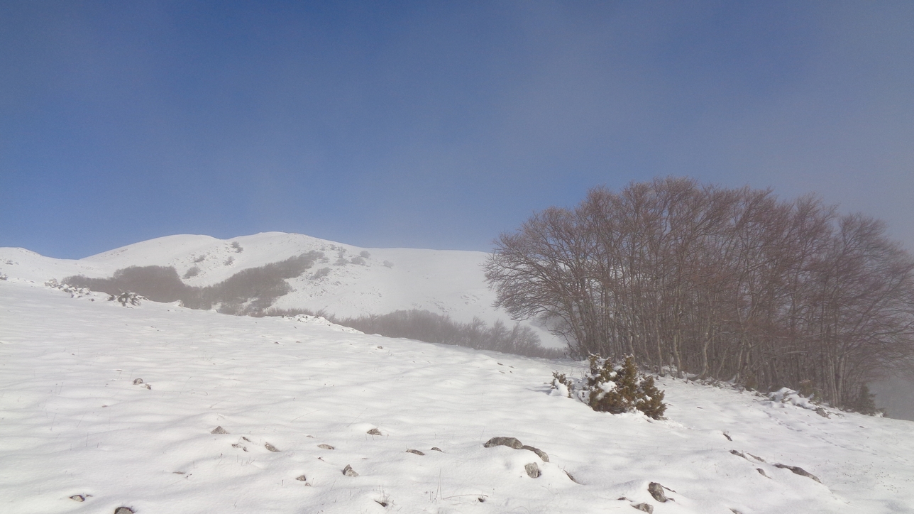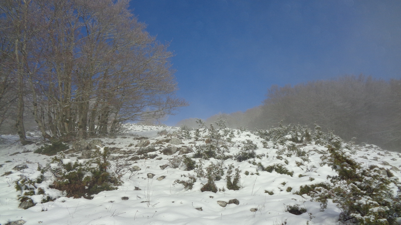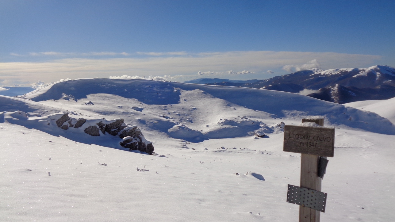 ITINERARIO: Sella di Corno di Scoppito (AQ) 1000m, Rio del Falconetto 1026m, Montagnole 1123m, Ponte Radio 1470m, cresta della Valle Cupa 1600m, Colle Sant'Agostino 1744m, Cresta Sud-Ovest del Calvo 1800m, Laghetto 1847m, Anticima del Calvo verso Ovest, Cima del Monte Calvo 1898m, Cresta Sud-Est 1800m, Sella 1720m, Cima del ponte radio dei Vigili del Fuoco 1770m, Sella 1720m, Bottino dell’Acqua 1660m, Ponte Radio 1470m, Montagnole 1123m, Rio del Falconetto 1026m, Sella di Corno 1000m