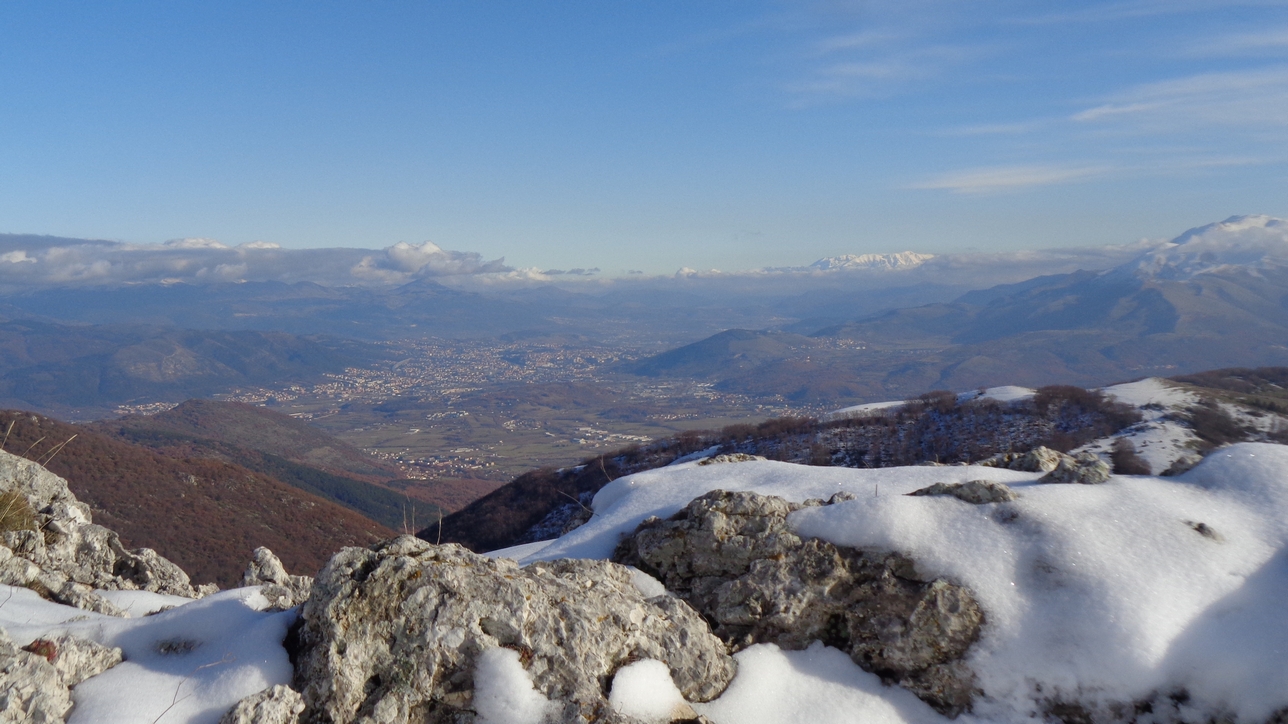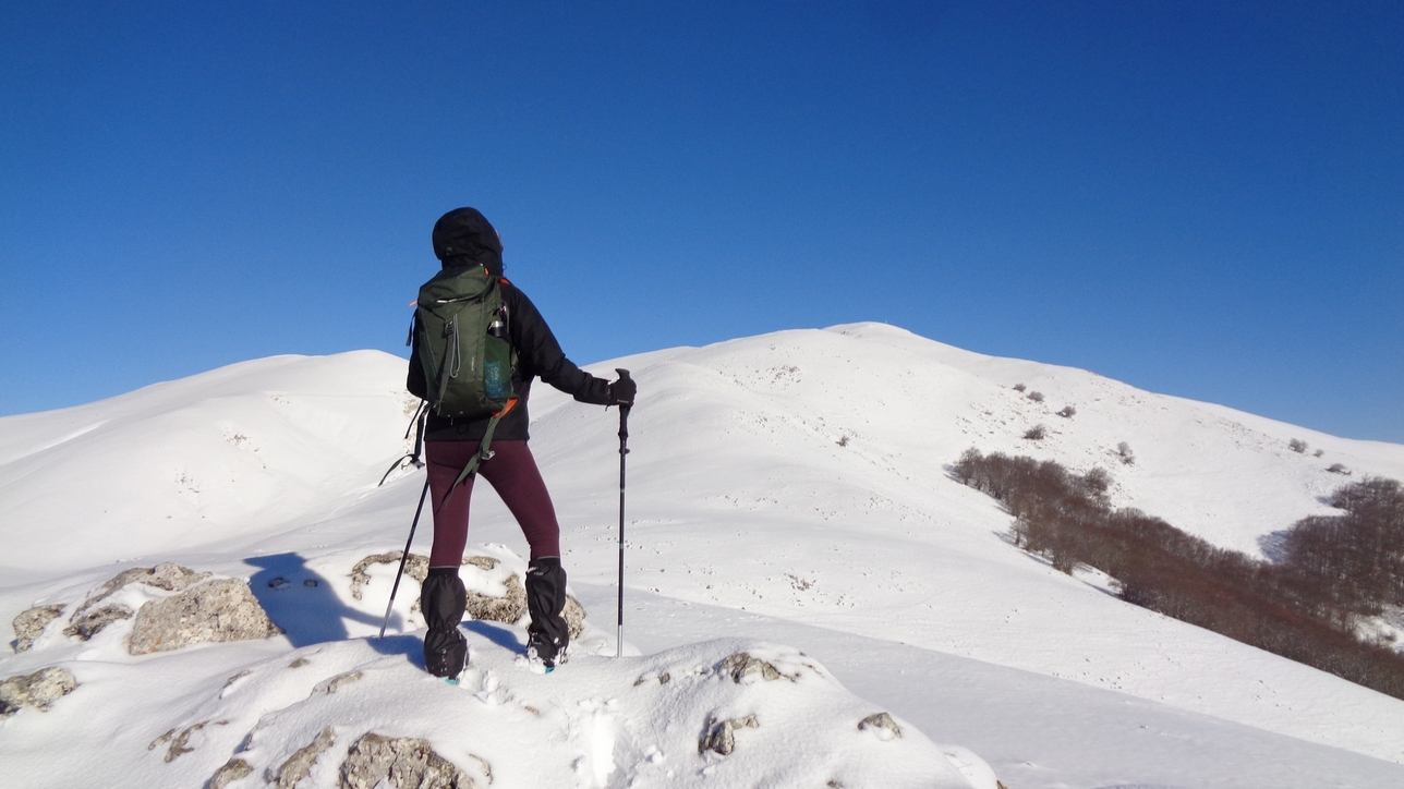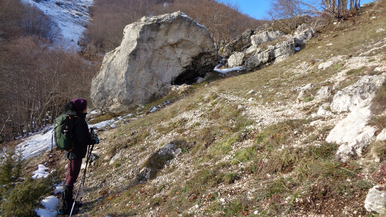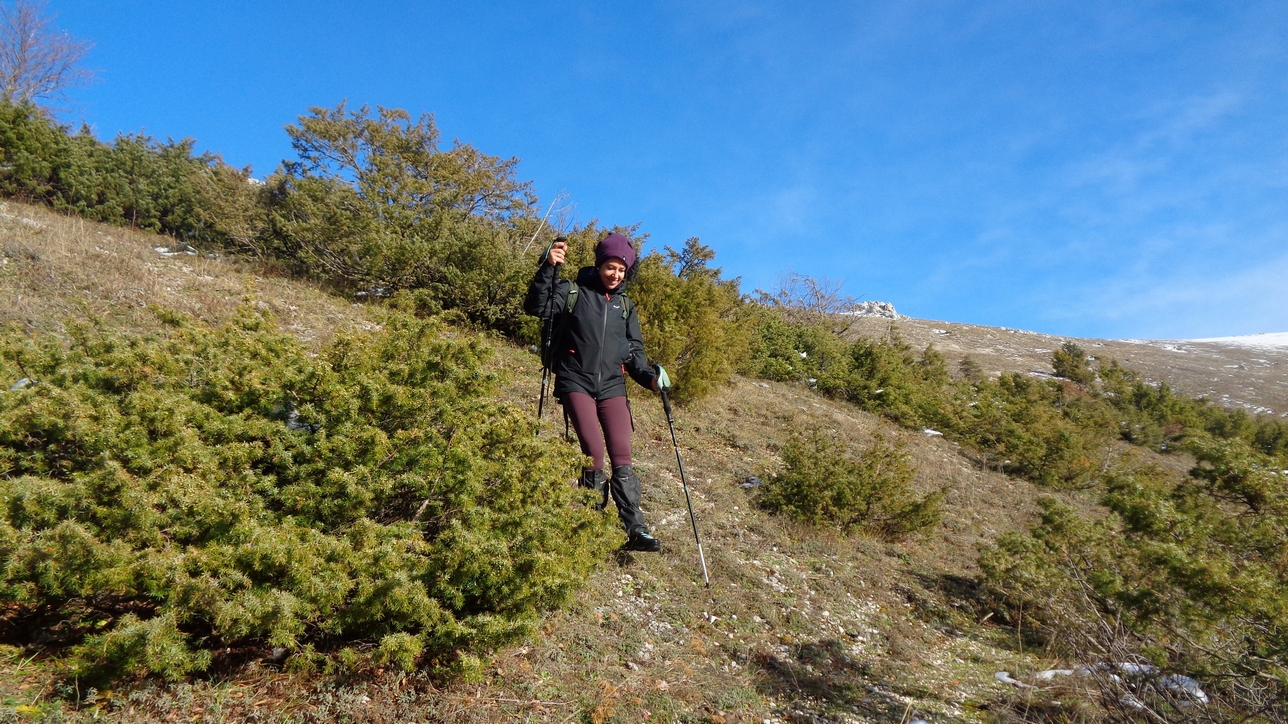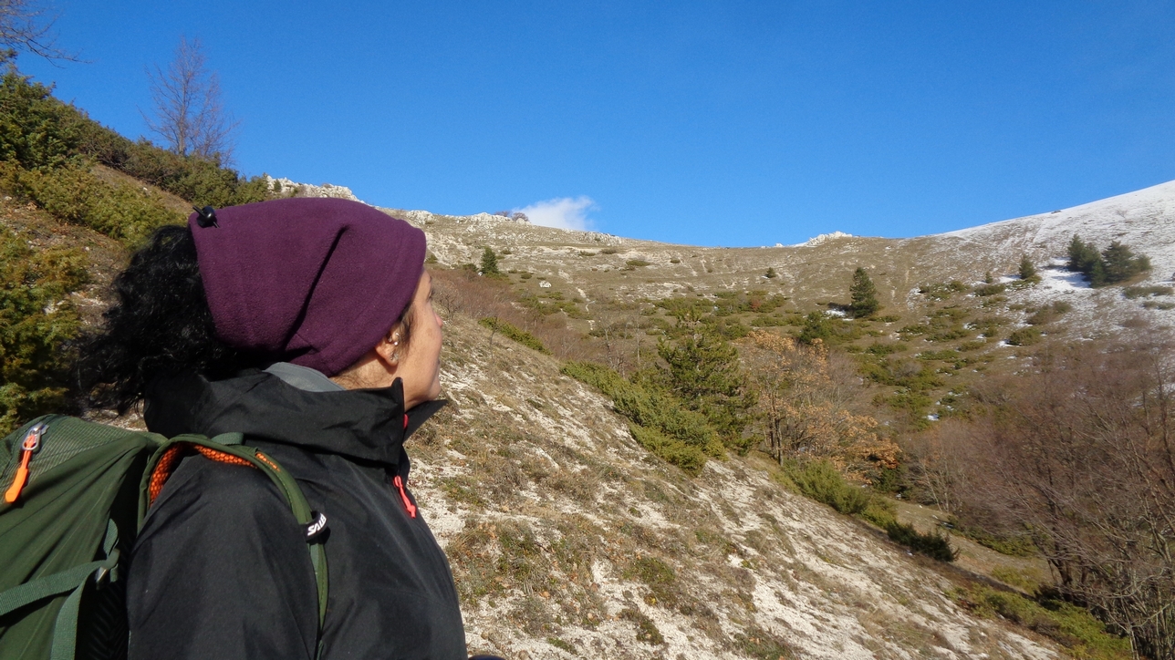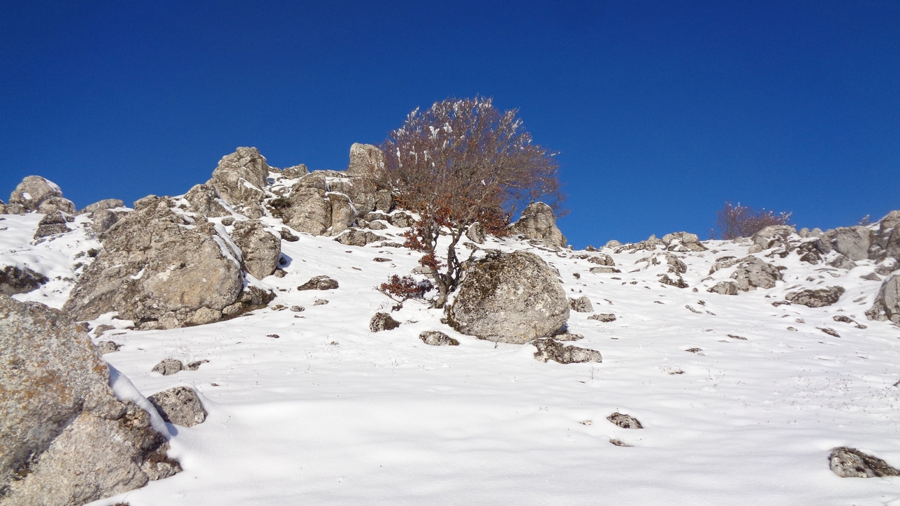 ITINERARIO: Sella di Corno di Scoppito (AQ) 1000m, Rio del Falconetto 1026m, Montagnole 1123m, Ponte Radio 1470m, cresta della Valle Cupa 1600m, Colle Sant'Agostino 1744m, Cresta Sud-Ovest del Calvo 1800m, Laghetto 1847m, Anticima del Calvo verso Ovest, Cima del Monte Calvo 1898m, Cresta Sud-Est 1800m, Sella 1720m, Cima del ponte radio dei Vigili del Fuoco 1770m, Sella 1720m, Bottino dell’Acqua 1660m, Ponte Radio 1470m, Montagnole 1123m, Rio del Falconetto 1026m, Sella di Corno 1000m