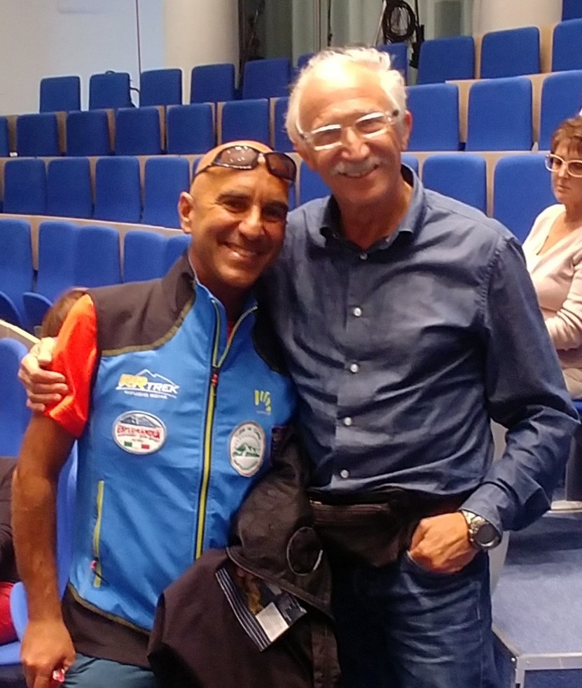 Bello l’abbraccio con il Past President della Sezione CAI de L’Aquila Bruno Marconi che conferma ancora una volta il suo approccio a tutto ciò che ruota intorno ai monti scevro da partigianerie di sorta.