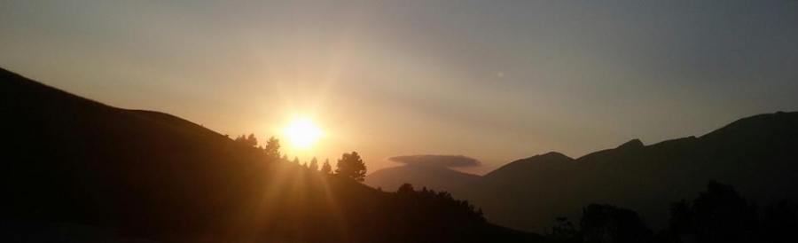 Gli ultimi raggi di sole illuminano il profilo alberato della vicina montagna come per salutarmi...mentre sullo sfondo ammiro una nuvola che, come un copricapo, oscura le Creste di Rotigliano del Monte San Franco sotto lo sguardo attento della lunga cresta della catena del Gran Sasso...